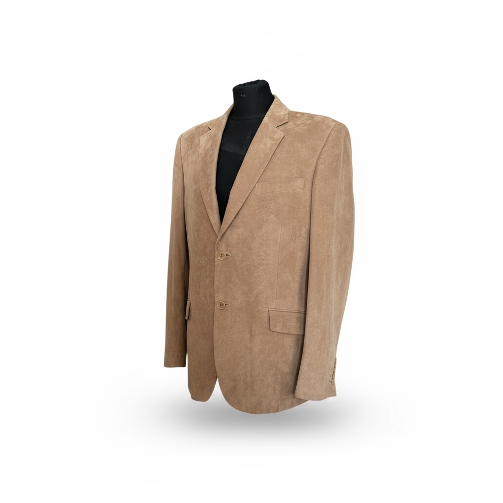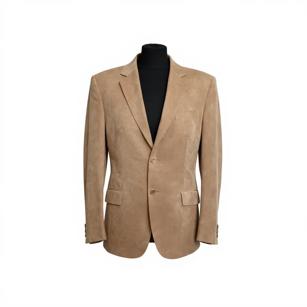 Blazer avac sa matière toute douce camel clair, fusion parfaite entre élégance et décontraction. Sa coupe structurée et son toucher velours apportent chaleur et distinction, incarnant l’assurance d’un homme raffiné dans les rues de Paris.