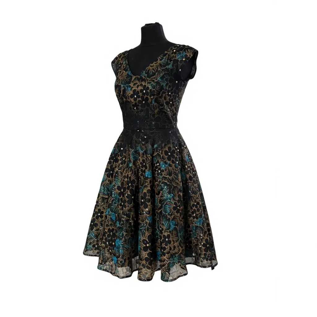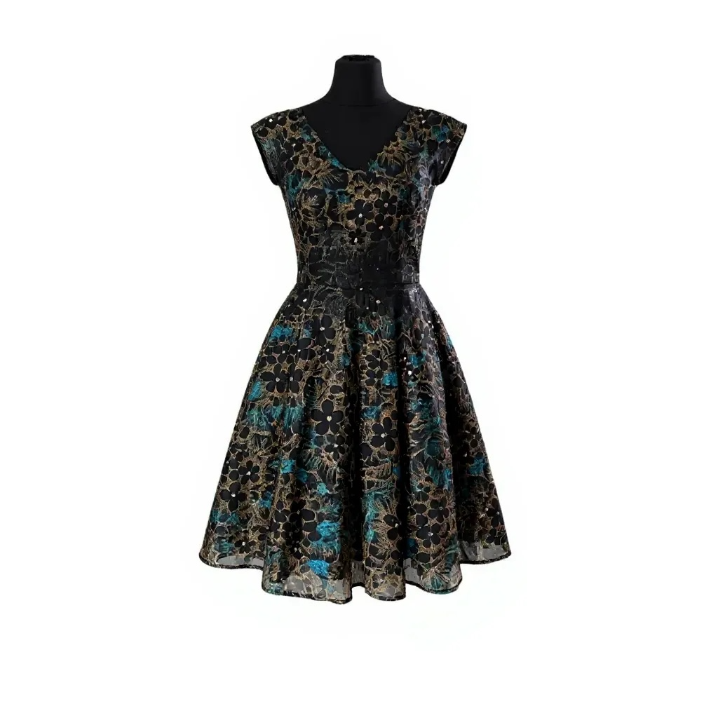 Robe aux teintes dorées et aux finitions raffinées, associant sophistication et fluidité. Les détails délicats sur la matière apportent éclat et profondeur, révélant une allure à la fois moderne et féminine. Une pièce qui capture l’esprit d’une soirée parisienne élégante ou d’un événement prestigieux.