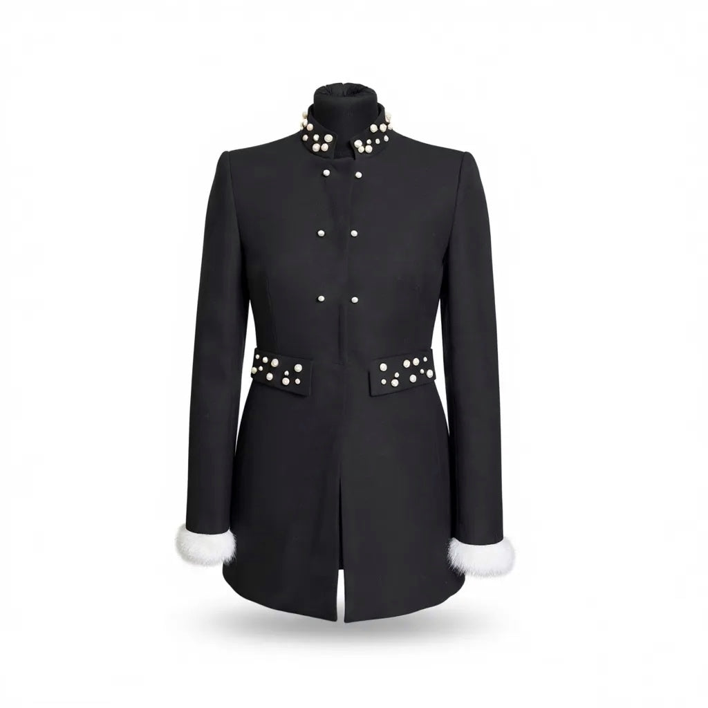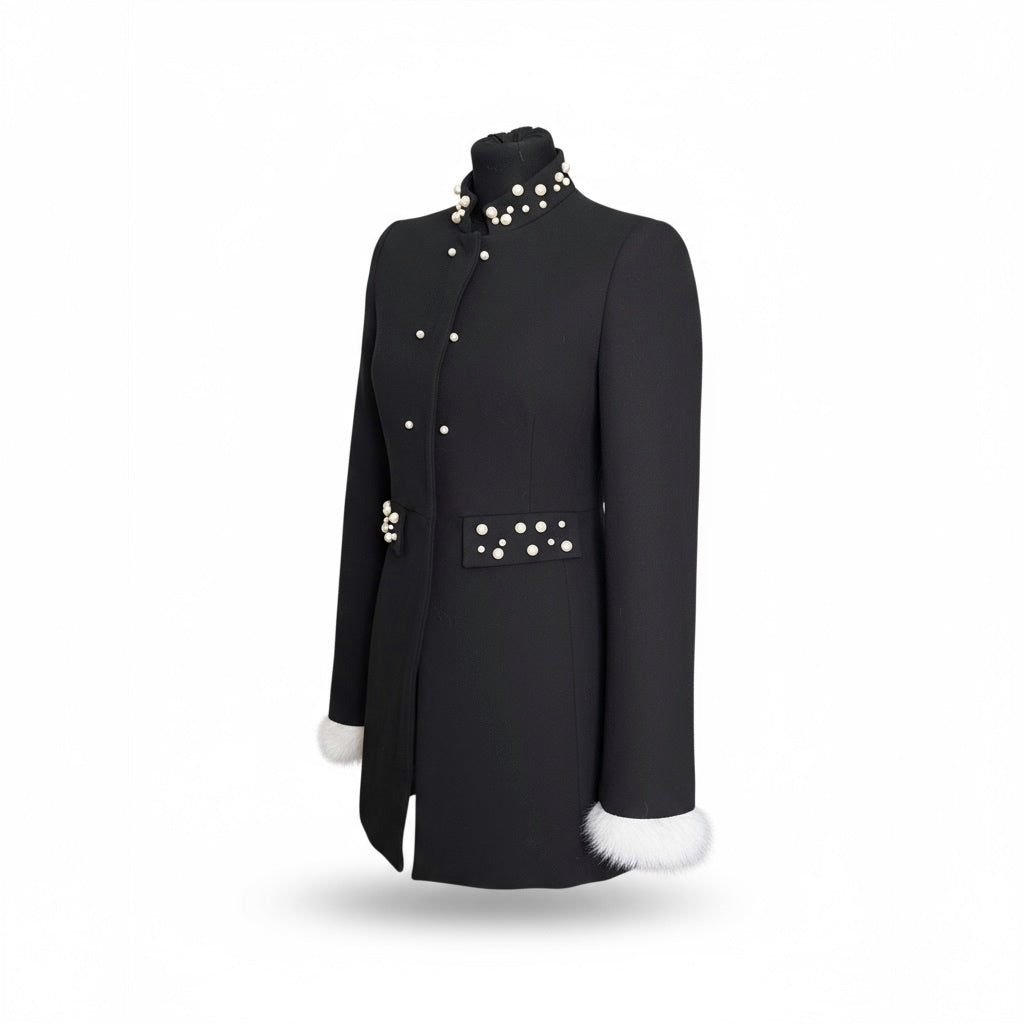 Veste boutonnée ornée de perles, avec des poignets fluffly d’une douceur remarquable. La matière veloutée et les détails soignés créent une allure féminine et précieuse, révélant un style délicat et affirmé à la fois. Une pièce d’exception pour une présence subtile mais marquante.