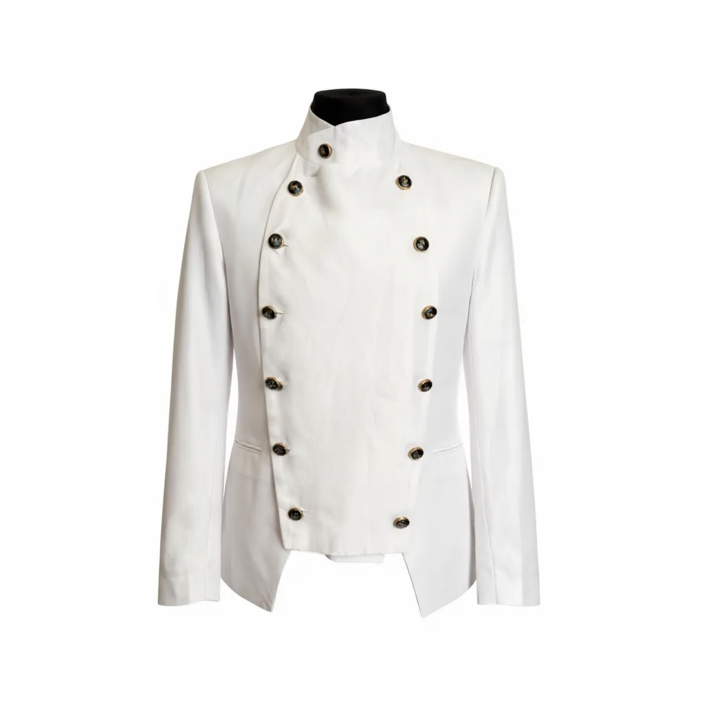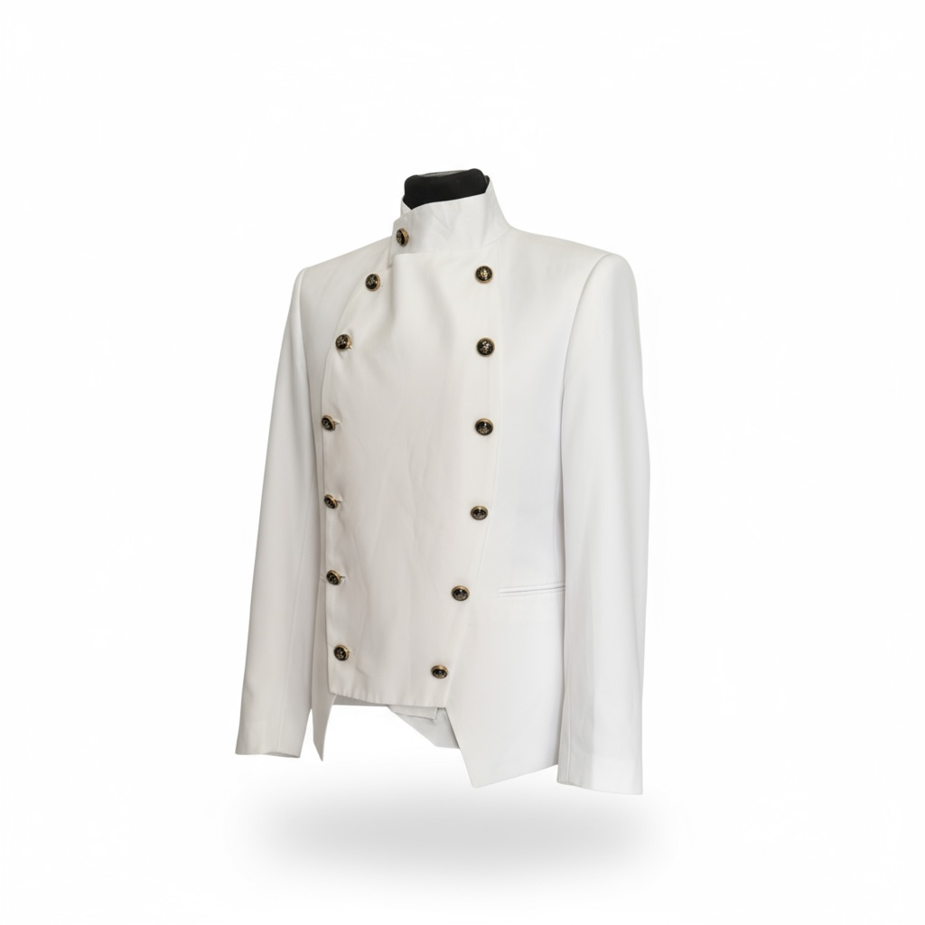 Veste à bouton inspirée des serveurs et cuisiniers des grands palaces parisiens. Coupe impeccable et tissu raffiné, symbole d’élégance et de précision, à la fois classique et contemporain. Une pièce qui incarne la prestance et le savoir-faire à la parisienne.